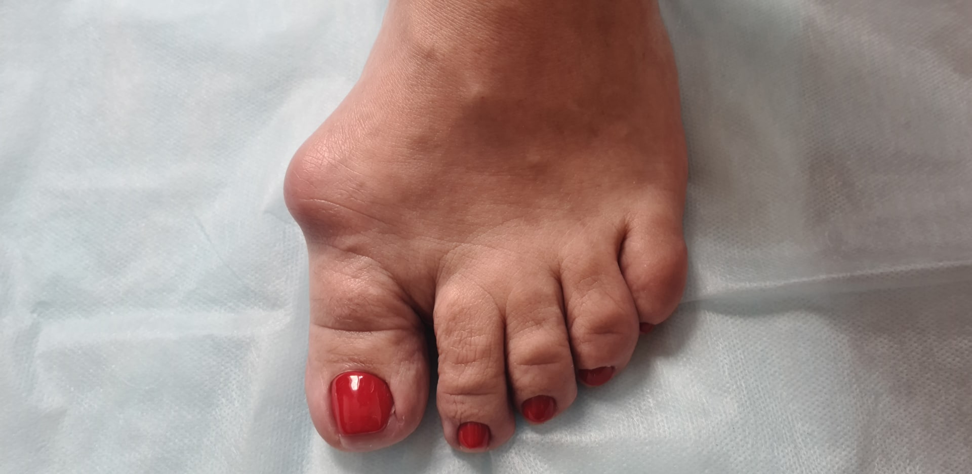 Es la deformidad del primer dedo y del primer radio que causa un abultamiento que es doloroso y que a su vez es el causante de deformidades en los dedos subyacentes. Es más frecuente en mujeres y tiene varios grados de deformidad. Este tipo de deformidad, conocida como juanete, puede ser tratado con cirugía mínimamente invasiva logrando un grado de corrección perfecto.